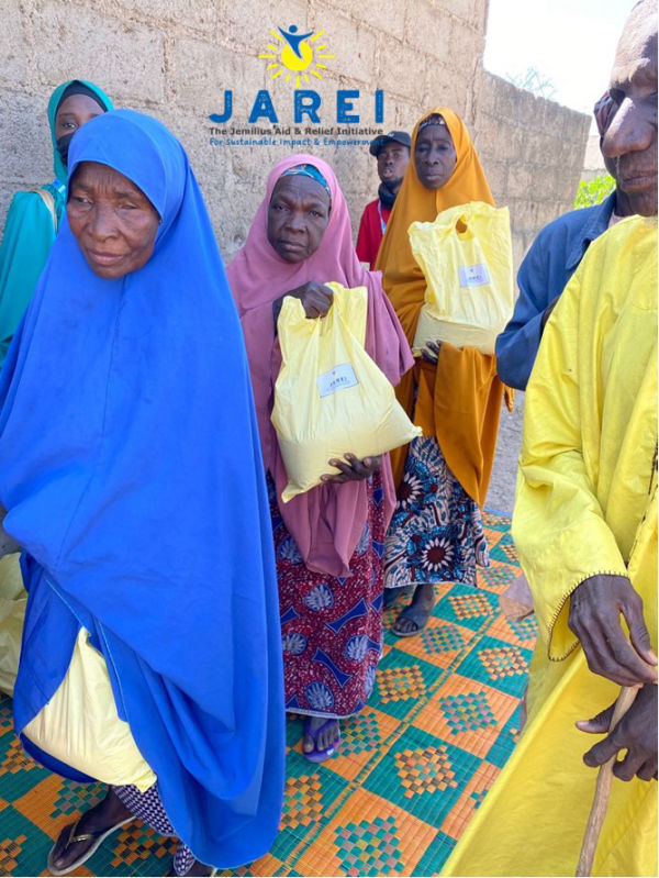 Food Distribution in Gidan Dutsi IDP Camp, a non-formal camp in Zamfara State for JAREI Year End Giving in the #AidforZamfara event. Food items like rice and spaghetti was distributed to 66 households. JAREI is exploring ways to provide sustainable livelihood interventions to help these families target their food needs and improve the quality of their lives.